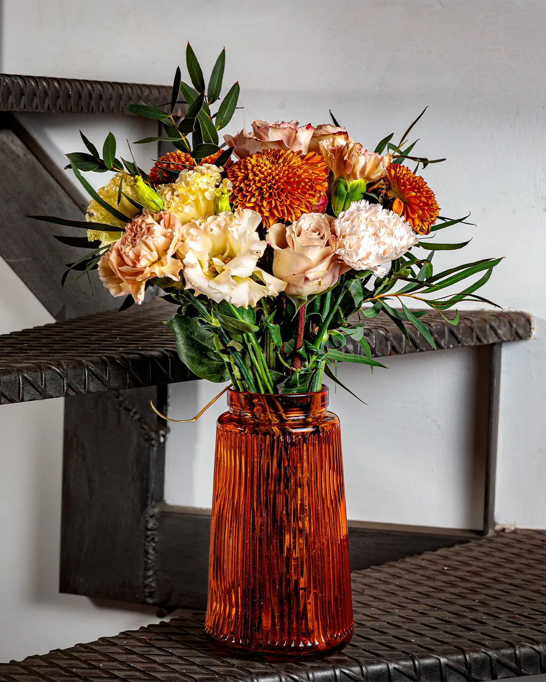 Il bouquet “California” è un’esplosione di luce e carattere, un bouquet che cattura l’anima solare della West Coast. La palette, calda e vibrante, si muove tra le sfumature del salmone, dell’arancio bruciato e del corallo, evocando tramonti infuocati e paesaggi pieni di energia. Fiori dalle texture diverse si mescolano con naturale armonia, creando un gioco visivo ricco e dinamico. Un bouquet che profuma di libertà, creatività e vitalità.