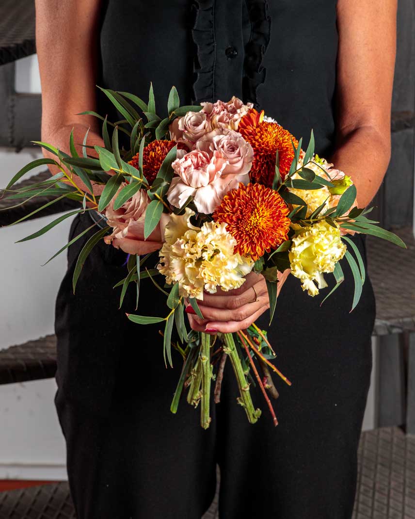Il bouquet “California” è un’esplosione di luce e carattere, un bouquet che cattura l’anima solare della West Coast. La palette, calda e vibrante, si muove tra le sfumature del salmone, dell’arancio bruciato e del corallo, evocando tramonti infuocati e paesaggi pieni di energia. Fiori dalle texture diverse si mescolano con naturale armonia, creando un gioco visivo ricco e dinamico. Un bouquet che profuma di libertà, creatività e vitalità.