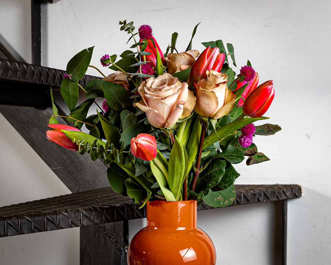 Il bouquet “Melody” è un incontro di contrasti che vibra come una sinfonia visiva. I tulipani rossi sprigionano l’energia del fuoco e della terra, decisi e vibranti, mentre le rose rosa portano equilibrio con le loro sfumature morbide, come un’eco gentile di primavera. Una composizione che racconta ritmo, colore e movimento, un bouquet dal carattere intenso ma armonioso, pensato per chi ama la bellezza che nasce dall’unione degli opposti