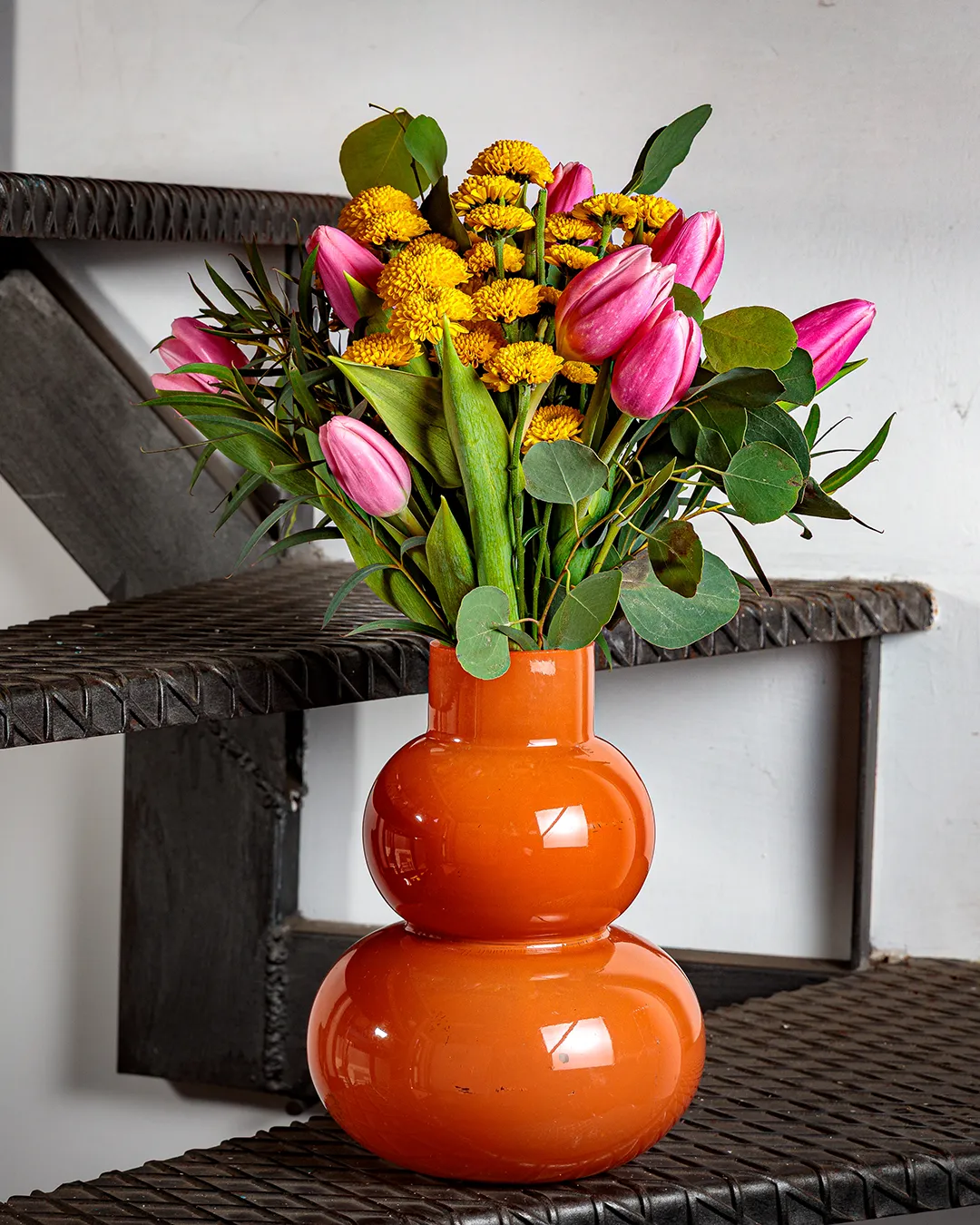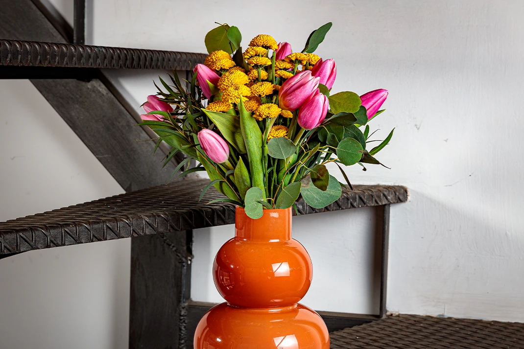 Il bouquet “Sammy” è un concentrato di energia positiva, un bouquet che sprigiona colore e buonumore. I tulipani fucsia, audaci e luminosi, si intrecciano ai santini colorati in un mix frizzante di forme e tonalità. Ogni fiore è una piccola esplosione di gioia, che racconta spensieratezza, entusiasmo e voglia di vivere. Un bouquet pensato per chi ama circondarsi di luce e trasmettere vibrazioni contagiose.
