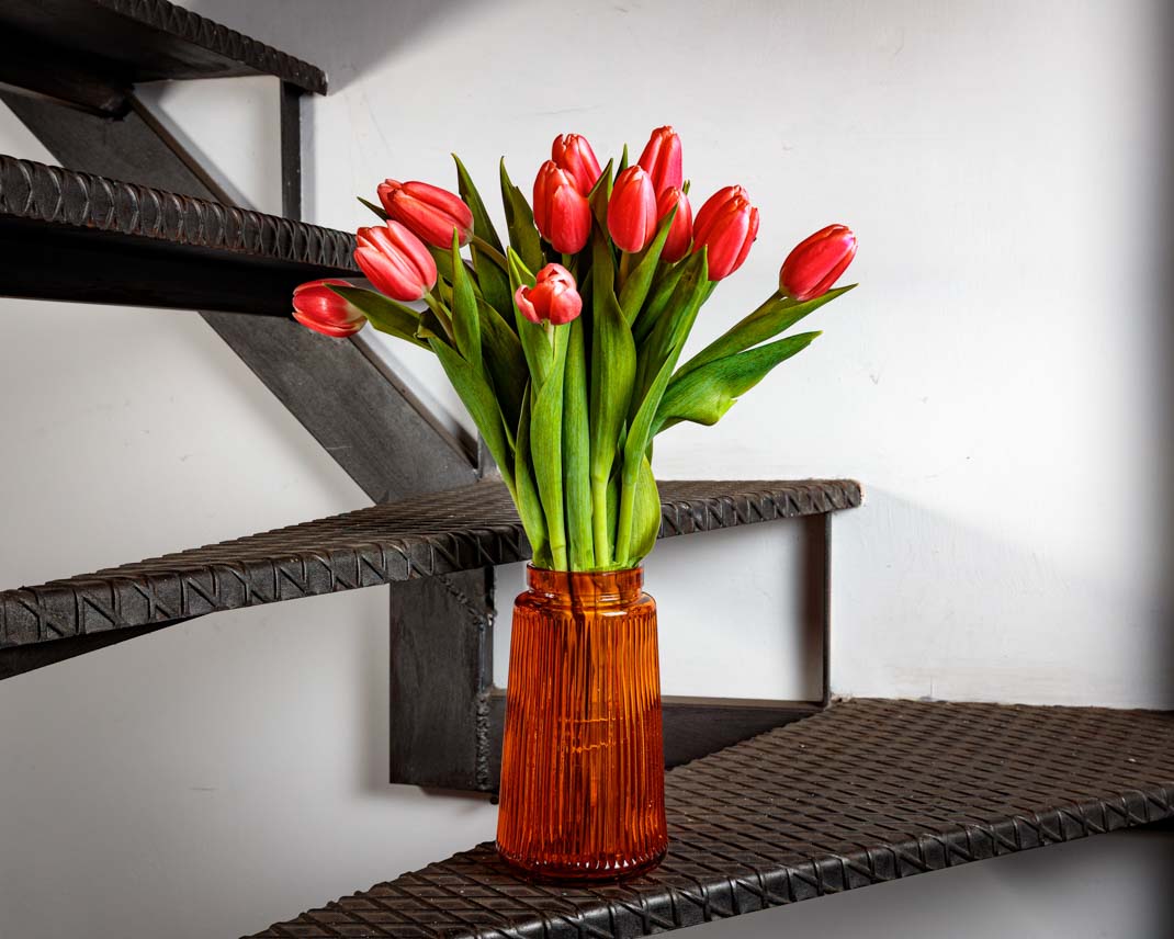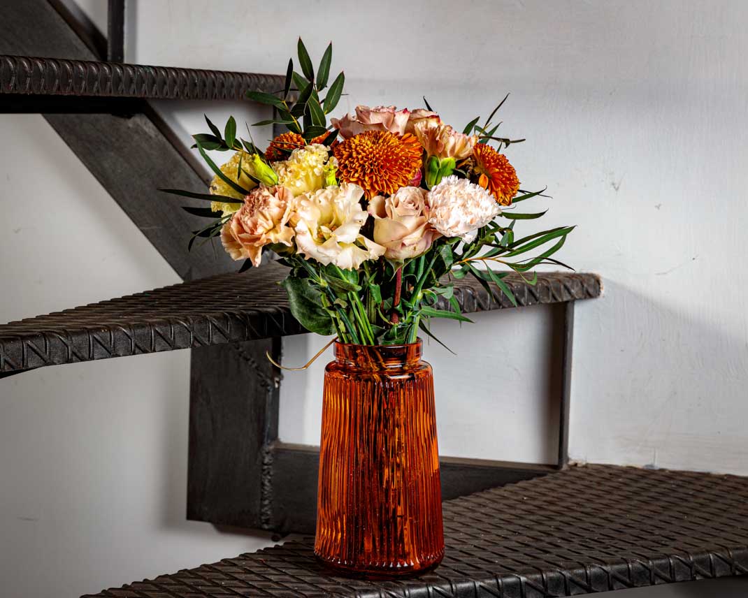 Il Vaso Arancio Piccolo unisce semplicità ed eleganza in un design intramontabile. Realizzato in vetro trasparente con raffinata lavorazione a coste verticali, cattura la luce creando riflessi caldi e avvolgenti. Perfetto per piccoli bouquet o fiori singoli, dona un tocco di colore e carattere a qualsiasi ambiente, dal tavolo da pranzo alla scrivania.